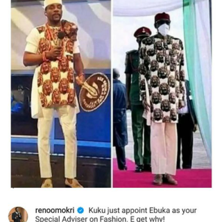 Days after the President's trouser caused a stir online, former Presidential aide, Reno Omokri, has advised President Buhari to appoint media personality, Ebuka Obi-Uchendu, as his Special Adviser on Fashion.